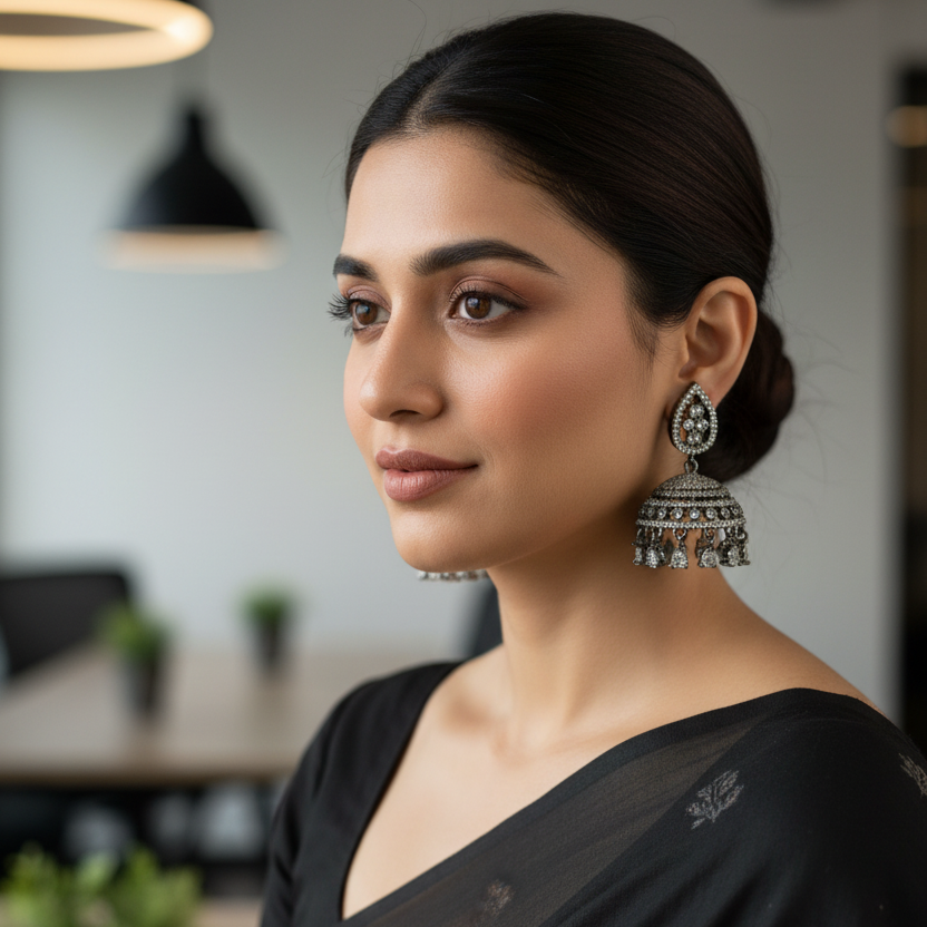 · These Jhumki earrings are just perfect for any Indian traditional wear. They will look the best when styled with Sarees, Shararas, Ghararas and Lehengas or gowns made from traditional Sarees.