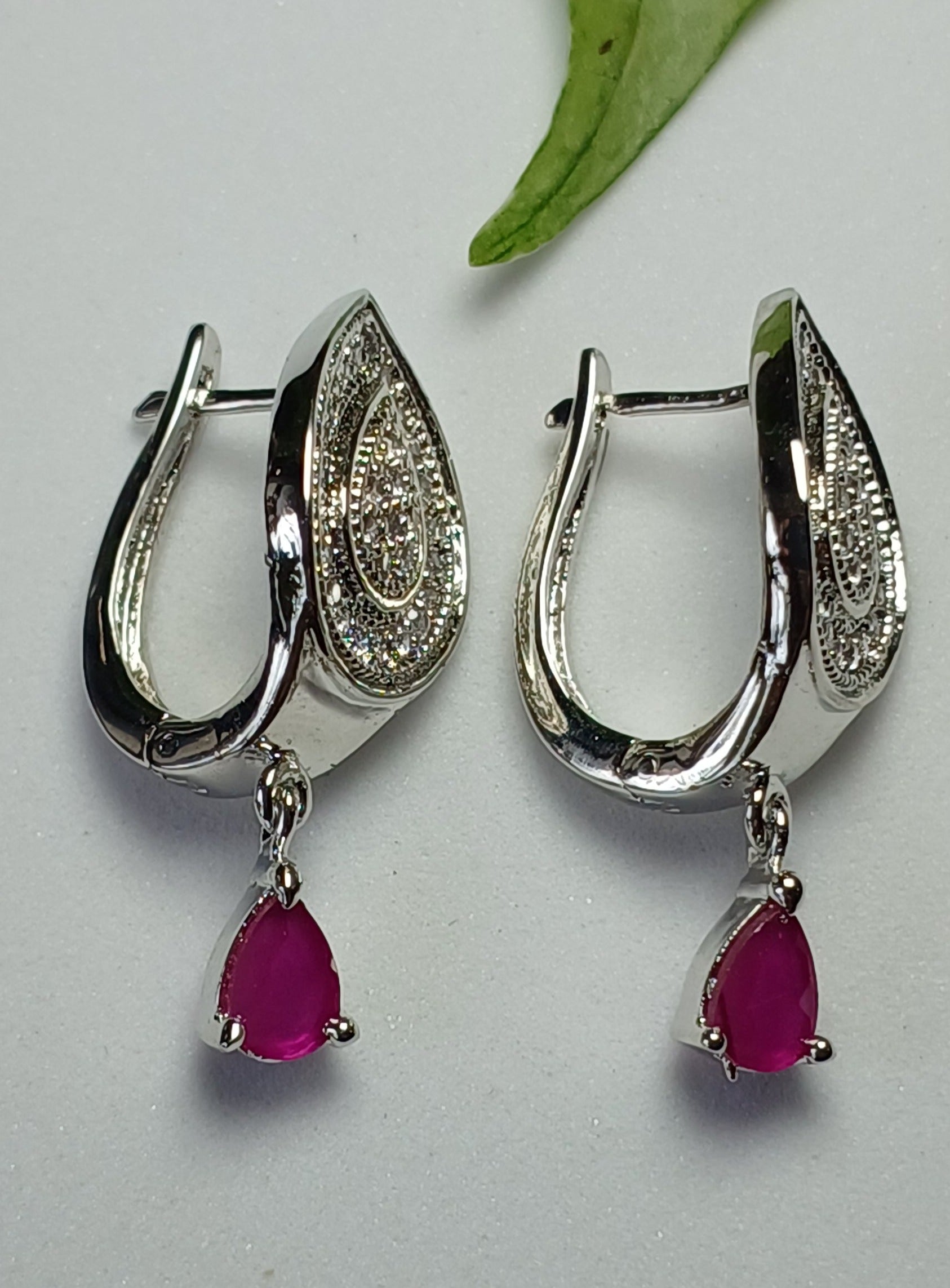 Material : Alloy, Silver Plated, American Diamond, Magenta Crystal