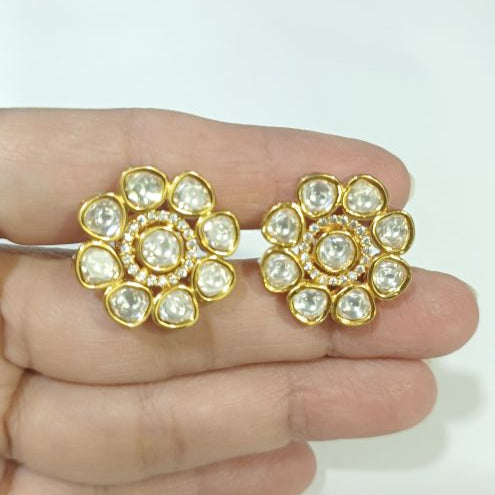 These Gold Floral Kundan Studs combine simplicity with elegance, making them a beautiful addition to any jewelry collection. Their classic design enhances your look effortlessly, perfect for both everyday wear and special occasions. Enjoy the timeless charm and subtle sophistication these earrings bring to your style.