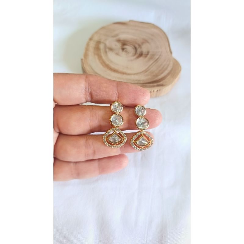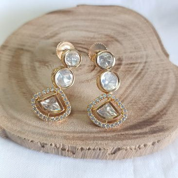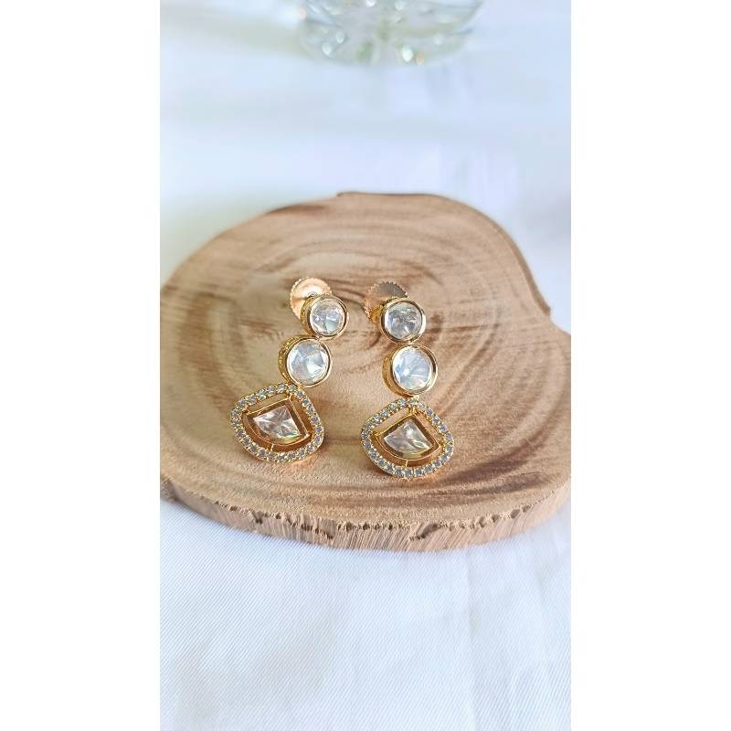 Charming kundan drop earrings featuring intricate gemstone work on carat-plated brass. These petite Lyla designs offer timeless elegance with authentic craftsmanship, perfect for everyday sophistication or special occasions. Lightweight and comfortable to wear.