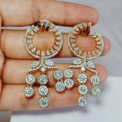 Introducing the Gold Reem Dangler, featuring American Diamond for a luxurious touch. These unique earrings boast a beautiful design that will elevate any outfit. Make a statement with this exquisite piece.