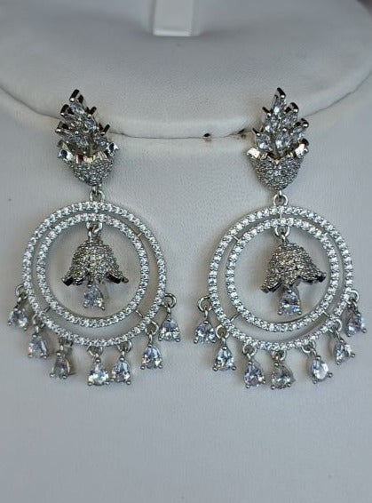Sparkle and shine with our beautiful Silver Anika Chandbali earrings. Made with American Diamond and Silver plating, these earrings add a touch of elegance to any outfit. Elevate your look and feel confident with this stunning accessory. Perfect for special occasions or everyday wear.