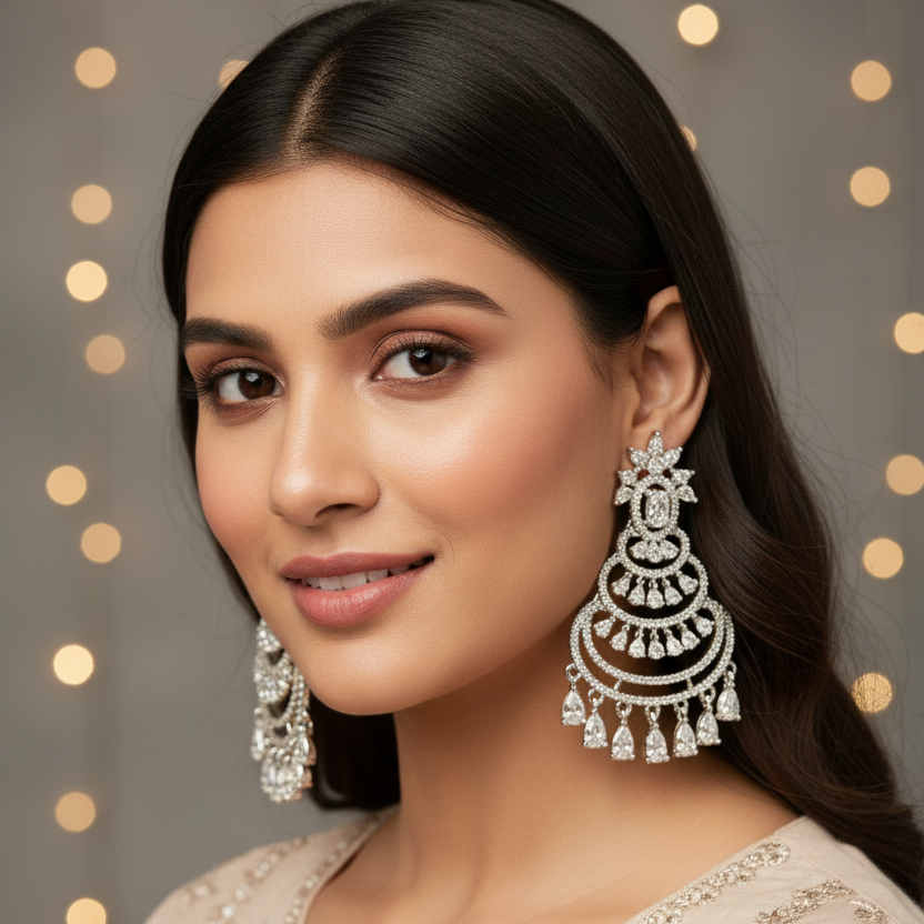 Indulge in elegance with our Silver Eliza Chandbalis! The intricate American diamond detailing adds a touch of sophistication, making them perfect for any occasion. Let the beauty of these earrings speak for themselves, making you feel and look truly beautiful.
