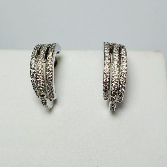 Introducing Silver Kala Balis, the perfect addition to any jewelry collection. These elegant bali earrings feature three lines of dazzling american diamonds, creating a stunning and sophisticated look. Elevate any outfit with these beautiful and versatile earrings.