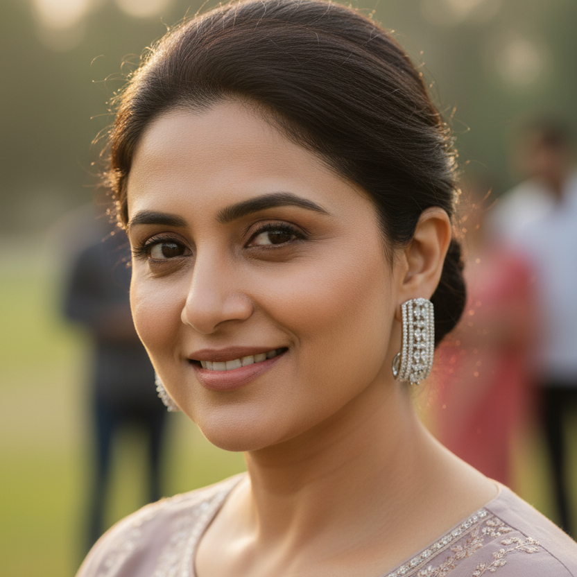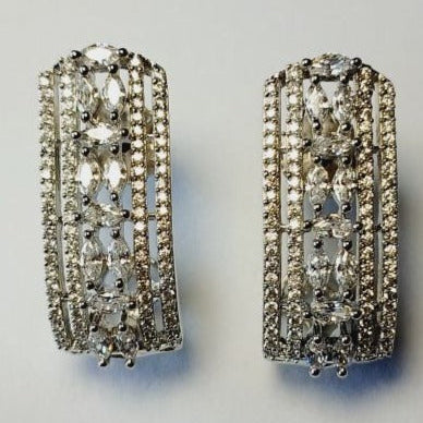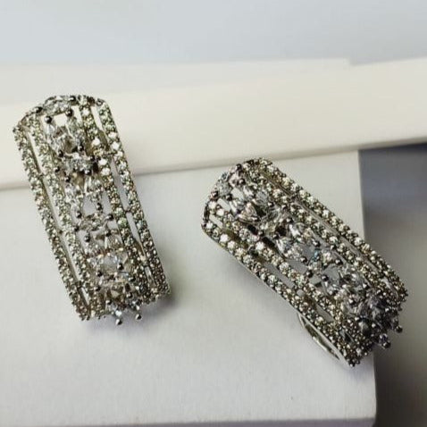 The timeless elegance of the Silver Navya Bali is crafted with stunning American Diamonds. These earrings offer a real look alike for a fraction of the price. Add a touch of sophistication to any outfit and shine bright with these exquisite earrings.