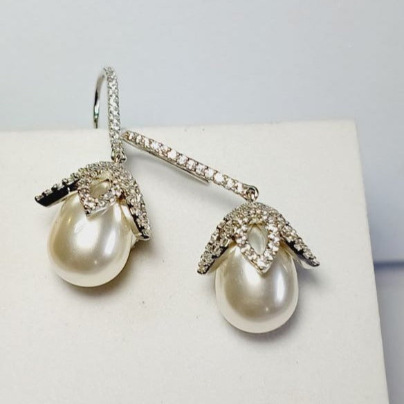 Material : Silver Plated on alloy, American Diamonds, pearl