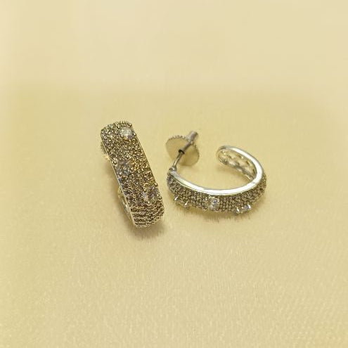 The Silver Vedika Diamond Balis showcase an expert fusion of shimmering American diamonds, featuring a sophisticated arrangement of tiny stones accentuating larger diamonds. Crafted with precision in sterling silver, these earrings offer a balanced interplay of size and sparkle, enhancing their luxurious appeal. Designed to provide elegant versatility, they are perfect for elevating both casual and formal ensembles with refined brilliance.
